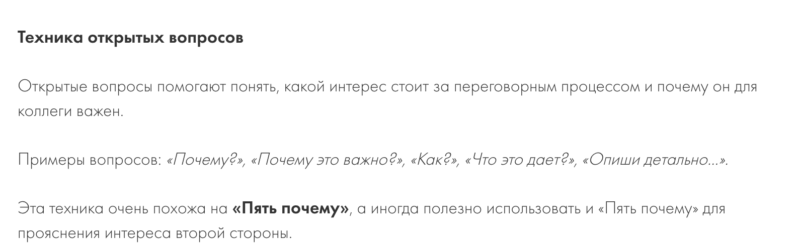 Для определения своих интересов и интересов коллег можно использовать технику открытых вопросов и технику продления картинки.
